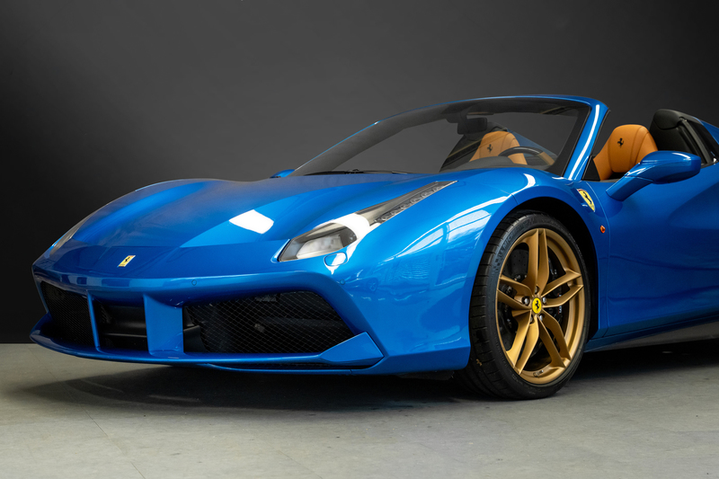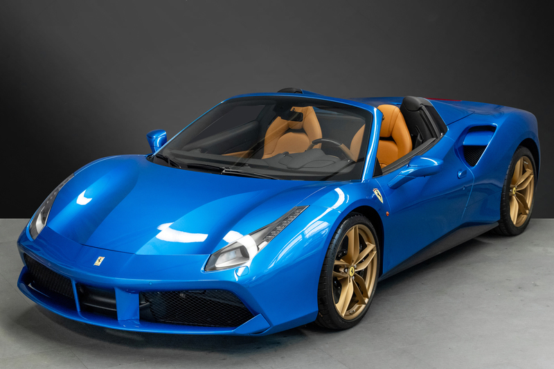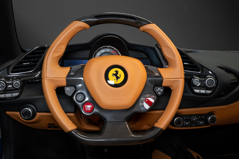 Sehr schön konfigurierter 488 Spider in Blu Corsa / Beige tradizione mit wenig km, deutsche Auslieferung, immer bei Ferrari gewartet, lückenloses Scheckheft. Ferrari Approved Garantie bis