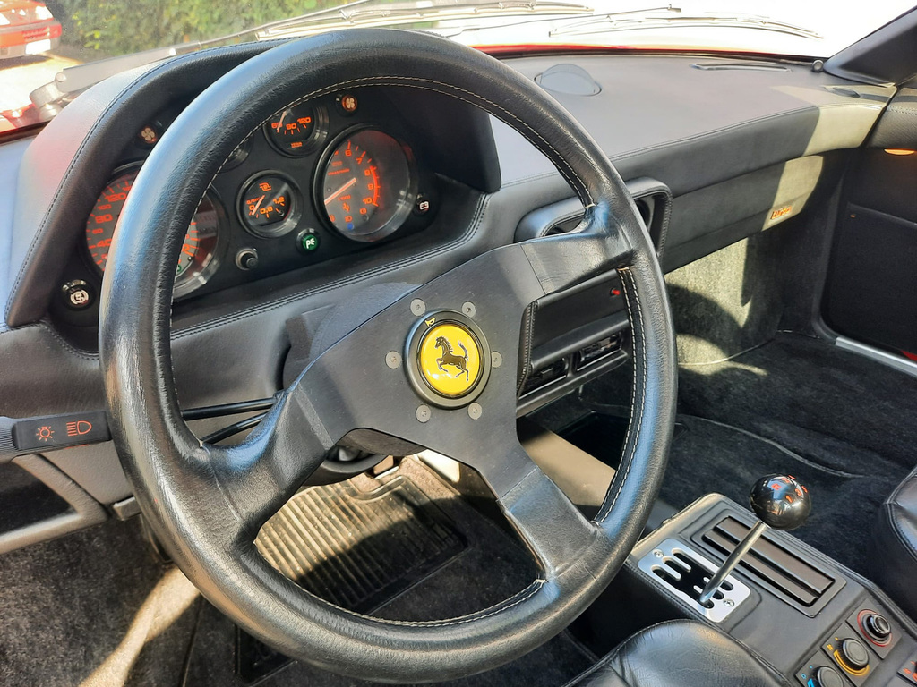 Der Wagen wurde im Jahr 1989, also ein Jahr nach Enzo Ferraris Tod, in Venetien ausgeliefert. Zu dieser Zeit gab es einen regelrechten Run auf neue Ferraris und sehr lange Lieferzeiten. Der Eigentümer erzählt, dass er eigentlich einen Targa (GTS) haben wollte, der aber nicht zu bekommen war, und der Händler ihm stattdessen einen GTB anbieten konnte, und das auch nur, weil dessen ursprünglicher Besteller verstorben war. Die Auslieferung fand Ende September 1989 statt, in dem Monat, in dem kurz vorher bereits der Nachfolger 348 auf der Frankfurter IAA seine Premiere gefeiert hatte. Es handelt sich also um einen der letztgebauten GTB Turbo – erkennbar unter anderem an dem serienmäßigen ABS, das nur dem letzten Baujahr vorbehalten war. Auch einige andere Details zeugen davon, dass Ferrari bis zum Ende des Modellzyklus seine Fahrzeugtypen immer weiterentwickelte.